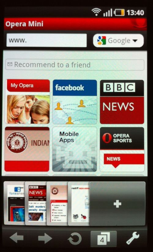 O aplicativo Opera Mobile feito para celulares é provavelmente o aplicativo de navegação na internet mais pratico, rapido que esta disponivel para celulares, contando com dois tipos de menus (inferior e superior na tela), o Opera Mobile dispoem de uma barra para endereço na sua parte superior e uma barra inferior com as opções Voltar, Avançar, Atualizar, assim como um navegador de um sistema operacional de desktop, isso tudo ocupando um espaço minimo na tela.